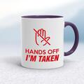 Hands Off Mug A novelty mug with "Hands Off I'm Taken" printed on both sides. Simple and straight to the point this novelty mug is great as a gift for any occasion. Our Hands Off mug is hand-pri...