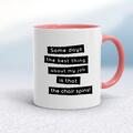 Some Days The Best Thing About My Job Mug A novelty mug with "Sometimes the best thing about my job is that the chair spins!" printed on both sides. Simple and straight to the point this novelty...