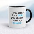 If You Think I'm a Dick Mug A rude mug with "If you think I'm a dick you should meet my ..." choose from either brother or father printed on both sides. Simple and straight to the point this rud...