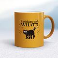 Lesbians Eat What Mug A rude mug with "Lesbians Eat What?!" printed on both sides. Simple and straight to the point this rude mug is great as a gift for any occasion. Our Lesbians Eat What mug i...
