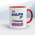 As DILFs Go Mug A rude mug with "As DILFs Go I Definitely Would!" printed on both sides. Simple and straight to the point this rude mug is great as a gift for any occasion. Our As DILFs Go mug i...