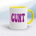 Purple Cunt Mug A rude mug with "CUNT" in a purple bold font printed on both sides. Simple and straight to the point this rude mug is great as a gift for any occasion. Our Purple Cunt mug is han...