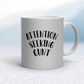 Attention Seeking Cunt Mug A rude mug with "Attention Seeking Cunt" on both sides. Simple and straight to the point this rude mug is great as a gift for any occasion. Our Attention Seeking Cunt ...
