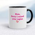 Ruined Your Vagina Mug A rude mug with "Mum, Sorry I Ruined Your Vagina" printed on both sides. Simple and straight to the point this rude mug is great as a gift for any occasion. Our Ruined You...