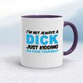 I'm Not Always A ... Just Kidding Go Fuck Yourself Mug A rude mug with "I'm Not Always A ... Just Kidding Go Fuck Yourself" choose from cunt, bitch or dick printed on both sides. Simple and stra...