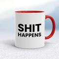 Shit Happens Mug A rude mug with "Shit Happens" printed on both sides. Simple and straight to the point this rude mug is great as a gift for any occasion. Our Shit Happens mug is hand-printed on...