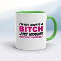 I'm Not Always A ... Just Kidding Go Fuck Yourself Mug A rude mug with "I'm Not Always A ... Just Kidding Go Fuck Yourself" choose from cunt, bitch or dick printed on both sides. Simple and stra...