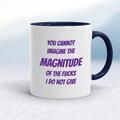 Magnitude of the Fucks Mug A rude mug with "You Cannot Imagine The Magnitude of the Fucks I Do Not Give" printed on both sides. Simple and straight to the point this rude mug is great as a gift ...
