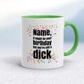 Personalised Birthday Swearing Mug A rude mug with "*Name*, it might be your birthday but you're still a ..."; personalised with your chosen name and choice of profanity printed on both sides. S...