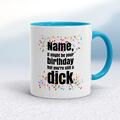 Personalised Birthday Swearing Mug A rude mug with "*Name*, it might be your birthday but you're still a ..."; personalised with your chosen name and choice of profanity printed on both sides. S...