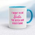 I Want To Be Barbie Mug A rude mug with "I Want To Be Barbie The Bitch has Everything" printed on both sides. Simple and straight to the point this rude mug is great as a gift for any occasion. ...