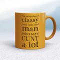 I'm An Intelligent Classy Man Mug A rude mug with "I'm An Intelligent Classy Well Educated Man Who Says ... A Lot" and your choice of either cunt or fuck. on both sides. Simple and straight to t...