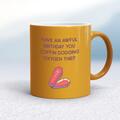 Coffin Dodging Oxygen Thief Mug A rude mug with "Have An Awful Birthday You Coffin Dodging Oxygen Thief" printed on both sides. Simple and straight to the point this rude mug is great as a gift ...