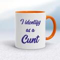 I Identify As A Cunt Mug A rude mug with "I Identify As A Cunt" printed on both sides. Simple and straight to the point this rude mug is great as a gift for any occasion. Our I Identify As A Cun...