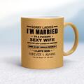 Sorry Ladies Mug A rude mug with "Sorry Ladies I'm Married To A Fucking Sexy Wife She's A Bit Crazy & Scares Me Sometimes She Is My Whole World I Love Her Forever & Always (Yes, She Bought Me Thi...