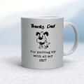 Thanks Dad - All My Shit Mug A rude mug with "Thanks Dad For Putting Up With All My Shit" printed on both sides. Simple and straight to the point this rude mug is great as a gift for any occasio...