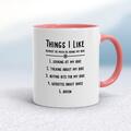 Things I Like My Bike Mug A novelty mug with "Things I Like Almost As Much As Riding My Bike" and a list of things liked printed on both sides. Simple and straight to the point this novelty mug ...