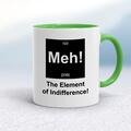 Meh! The Element Of Indifference Mug A geeky mug with "Meh! The Element Of Indifference" printed on both sides. Simple and straight to the point this geeky mug is great as a gift for any occasio...