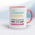 Silence Is Golden Mug A novelty mug with "Silence is golden... ....unless you have kids, then it's just suspicious" printed on both sides. Simple and straight to the point this novelty mug is gr...