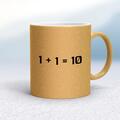 1+1 Mug A geeky mug with "1+1=10" printed on both sides. Simple and straight to the point this geeky mug is great as a gift for any occasion. Our 1+1 mug is hand-printed on both sides (front/bac...