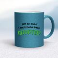 So Cute I'm Adopted Mug - Blue Glitter/White, 10oz