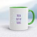 Fresh Out Of Fucks Mug A rude mug with "Fresh Out Of Fucks" printed on both sides. Simple and straight to the point this rude mug is great as a gift for any occasion. Our Fresh Out Of Fucks mug ...