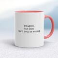 We'd Both Be Wrong Mug A novelty mug with "I'd Aggree But Then We'd Both Be Wrong" printed on both sides. Simple and straight to the point this novelty mug is great as a gift for any occasion. O...