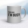 Fuck Off, I'm Busy Mug A rude mug with "Fuck Off, I'm Busy" on both sides. Simple and straight to the point this rude mug is great as a gift for any occasion. Our Fuck Off, I'm Busy mug is hand-...