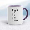 A Fuck For All Occasions Mug A rude mug with "Fuck" and a range of options - "You", "It", "Off", "This", "That" and "Everything" printed on both sides. Simple and straight to the poi...