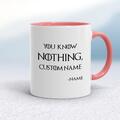 Personalised You Know Nothing Mug - White/Pink, 10oz