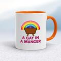 A Gay In A Manger Mug A rude mug with "A Gay In A Manger" and a colourful rainbow graphic printed on both sides. Simple and straight to the point this rude mug is great as a gift for any occasio...