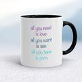 All You Need Is Love, All You Have Is Porn Mug A rude mug with "All You Need Is Love. All You Want Is Sex, All You Have Is Porn" printed on both sides. Simple and straight to the point this rude...