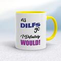 As DILFs Go Mug A rude mug with "As DILFs Go I Definitely Would!" printed on both sides. Simple and straight to the point this rude mug is great as a gift for any occasion. Our As DILFs Go mug i...