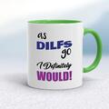 As DILFs Go Mug A rude mug with "As DILFs Go I Definitely Would!" printed on both sides. Simple and straight to the point this rude mug is great as a gift for any occasion. Our As DILFs Go mug i...