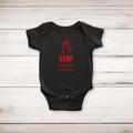 Stop BabygrowSuper soft and stretchy 100% cotton, short sleeve, babygrow / romper suit / sleepsuit with poppers for ease of dressing. Printed with 'Stop I Really Don't Give A Fuck' across the fron...