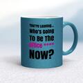 You're Leaving Mug A rude mug with "You're Leaving...Who's Going To Be The Office ... Now?" and your choice of swear word printed on both sides. Simple and straight to the point this rude mug is...