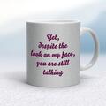 Still Talking Mug A rude mug with "Yet, Despite The Look On My Face, You Are Still Talking" on both sides. Simple and straight to the point this rude mug is great as a gift for any occasion. Our...