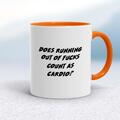 Running Out of Fucks Mug A rude mug with "Does Running Out Of Fucks Count As Cardio?" printed on both sides. Simple and straight to the point this rude mug is great as a gift for any occasion. O...