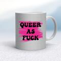 Queer As Fuck Mug A rude mug with "Queer As Fuck" printed on both sides. Simple and straight to the point this rude mug is great as a gift for any occasion. Our Queer As Fuck mug is hand-printed...