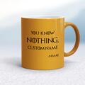 Personalised You Know Nothing Mug A novelty mug with "Game of Thrones inspired Personalised You Know Nothing, 'Custom Name'" printed on both sides. Simple and straight to the point this novelty ...