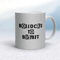 Bollocks To Brexit Mug A rude mug with "Bollocks to Brexit" in a punk style font printed on both sides. Simple and straight to the point this rude mug is great as a gift for any occasion. Our Bo...