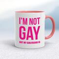 Not Gay But My Girlfriend Is Mug A rude mug with "I'm Not Gay But My Girlfriend Is" printed on both sides. Simple and straight to the point this rude mug is great as a gift for any occasion. Our...