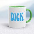 Blue Dick Mug A rude mug with "DICK" in a blue bold font printed on both sides. Simple and straight to the point this rude mug is great as a gift for any occasion. Our Blue Dick mug is hand-prin...