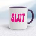Pink Slut Mug A rude mug with "SLUT" in a pink bold font printed on both sides. Simple and straight to the point this rude mug is great as a gift for any occasion. Our Pink Slut mug is hand-prin...
