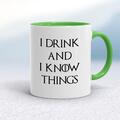 I Drink And I Know Things Mug A novelty mug with "I Drink And I Know Things" printed on both sides. Simple and straight to the point this novelty mug is great as a gift for any occasion. Our I D...
