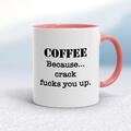 Crack Fucks You Up Mug A rude mug with "Coffee Because Crack Fucks You Up" printed on both sides. Simple and straight to the point this rude mug is great as a gift for any occasion. Our Crack Fu...