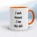 I Work Because Mug A rude mug with "I Work Because I Love This Shit" printed on both sides. Simple and straight to the point this rude mug is great as a gift for any occasion. Our I Work Because...