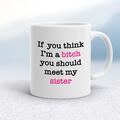 If You Think I'm a Bitch Mug A rude mug with "If you think I'm a bitch you should meet my ..." choose from either sister or mother printed on both sides. Simple and straight to the point this ru...