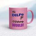 As DILFs Go Mug A rude mug with "As DILFs Go I Definitely Would!" printed on both sides. Simple and straight to the point this rude mug is great as a gift for any occasion. Our As DILFs Go mug i...