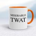Miserable Swearing Mug A rude mug with "Miserable..." and your choice of swearword on both sides. Simple and straight to the point this rude mug is great as a gift for any occasion. Our Miserabl...